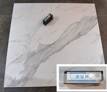 測評瓷磚必不可少的一項環節就是光澤度的測試,小編使用專業的光澤度儀,在瓷磚表面移動不同的位置測試,最后結果為多個位置光澤度的平均值。測試結果為100.9度,滿足消費者對瓷磚亮度舒適感的極致追求。
