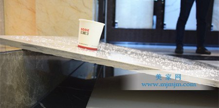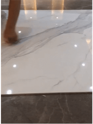 小編為廣大消費者測試這款魚肚白瓷磚的防滑性能。將瓷磚傾斜放置,并在灑上水的傾斜瓷磚表面放上一個裝滿水的水杯,測試結果是水杯并沒有滑落的跡象,由此可見,這款魚肚白的防滑性能值得信賴。