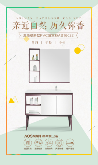 親近自然,歷久彌香,澳斯曼衛浴推出全新款PVC浴室柜AS16022。夢幻的紫銀色和純凈的啞光白搭配,給人以北歐極光的感受,仿佛正行走在沉睡千年的北歐古老森林中。伴隨著清晨的洗漱,與自然則變得更加親近。年邁的父親,不能像年輕時那般朝氣蓬勃,不像年輕時那般熱血沸騰,他總喜歡宅在家里,但又舍棄不得外面的自然美好風光。那就為他定制一個“AS16022”浴室柜,給他一份足不出戶也能親近自然的愛。