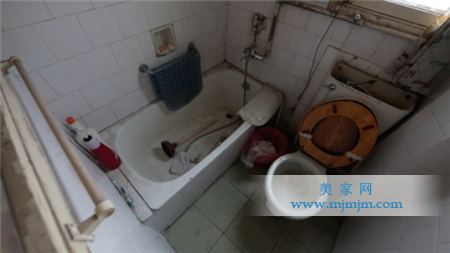 榜樣人物改造前的衛生間,破損比較嚴重,且沒有水槽,所以刷牙、洗臉等清潔問題都集中在廚房。功能設施不齊全,使衛浴間空間利用不充分。