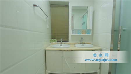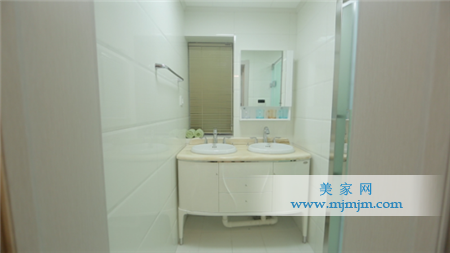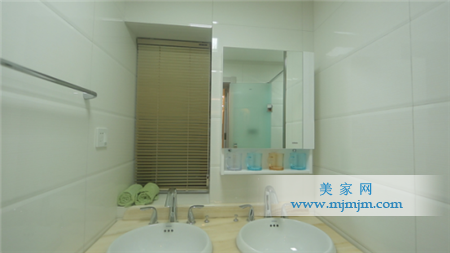 收納方面,衛浴間安裝了兩個收納神器:帶有兩個洗手池的浴室柜,和外面是鏡子里面是柜子的鏡柜。浴室柜和鏡柜搭配在一起,可以充分的收納好衛浴間的雜物。