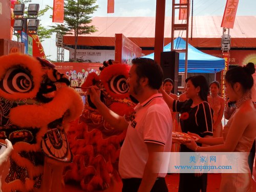 柳董事長和福州大將軍陶瓷海峽至尊店羅董為醒獅點睛,祥獅賀瑞,恭祝開業(yè),生意興隆