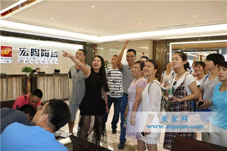 過了一把“VR科技虛擬漫步”之癮,參觀團有條不紊地又先后參觀了二樓的新品區、選材區、樣板間展示區。“宏陶的展館設計非常大氣、產品展示非常到位,精工品質、精彩生活是我們永恒的追求。”參觀的每個人都發出由衷贊嘆!