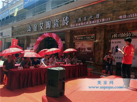 7月9日,歷史文化名城山西太原迎來了金艾陶太原店的盛大開業活動。歌舞升平的現場,業主們縱情享受著廠商帶來的活動優惠,這預示著陶瓷一線品牌金艾陶又一家專賣店落成,禮惠大眾。