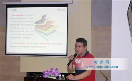 會議首先由恊進企業(yè)研發(fā)總監(jiān)樂紅軍先生做研發(fā)上的技術(shù)分享。在報告上先對市面上仿地毯/木材/石材瓷質(zhì)磚指出了美中不足,對自主研發(fā)的數(shù)碼立體噴釉瓷質(zhì)磚新產(chǎn)品做了拋磚引玉的介紹。