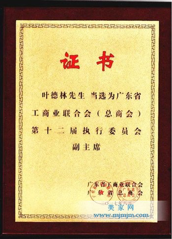 作為民營企業的優秀代表,葉德林曾被評為廣東省政協委員、肇慶市政協常委、佛山市人大代表、佛山市政協常委、中國建筑材料聯合會副會長、中國建筑衛生陶瓷協會副會長、中國陶瓷工業協會副理事長、廣東省建筑材料行業協會副會長、佛山市工商聯主席、全國工商聯執委等等。