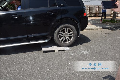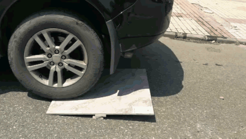 瓷磚的抗壓性體現了瓷磚的壽命,測試人員把特斯拉灰傾斜狀放置,4個成年人站在瓷磚受力最薄弱的中部,瓷磚沒有發(fā)出任何聲響,也沒有產生任何裂痕,如果說光站著不能體現該瓷磚的抗壓性,那么,用兩頓多的路虎車子壓過也依然完好無損。