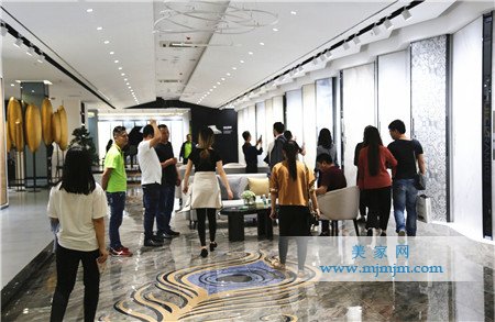 此次陶博會,現代感十足的譽輝10000平方新展廳榮耀開館,吸引了眾多經銷商、行業大咖和媒體前來一睹風采,同時還有譽輝2017秋冬新品發布會,在展廳舉辦了一場別出心裁的跨國盛宴-Hello!歐洲“譽鑒”匠心之旅,美酒、美食、美畫、美產品,在這里應有盡有,滿足一眾客商的多(diao)樣(zuan)要求。