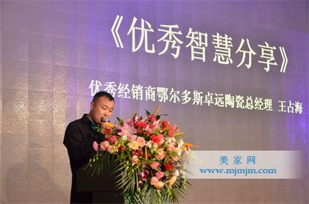 鄂爾多斯王總作為卓遠(yuǎn)陶瓷的經(jīng)銷(xiāo)商代表也上臺(tái)分享了自己與卓遠(yuǎn)陶瓷結(jié)緣以來(lái)的心得,并分享了自己的成功經(jīng)驗(yàn)!王總說(shuō): “屈指算來(lái),我加入卓遠(yuǎn)陶瓷已經(jīng)有9年了,在這9年時(shí)間里我的團(tuán)隊(duì)與卓遠(yuǎn)一起經(jīng)歷風(fēng)雨,一起成長(zhǎng),一起蛻變。我們對(duì)品牌長(zhǎng)期以來(lái)地相互信任,相互支持,同舟共濟(jì),相濡以沫,讓我感觸很深,才有了鄂爾多斯卓遠(yuǎn)現(xiàn)在的成績(jī)。我一直認(rèn)為走品牌路線才是做陶瓷最大的出路,品牌也是終端競(jìng)爭(zhēng)最有力的武器。一心一意地做好卓遠(yuǎn)品牌,依靠好產(chǎn)品和好服務(wù)形成強(qiáng)大的市場(chǎng)口碑,以真實(shí)力、真功夫打動(dòng)每一位消費(fèi)者,這就是我經(jīng)營(yíng)的致勝法寶”。王總的成功經(jīng)驗(yàn)感動(dòng)了在場(chǎng)的無(wú)數(shù)嘉賓!紛紛為其鼓掌!