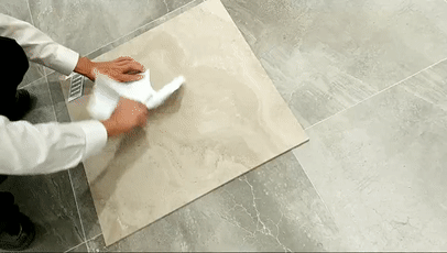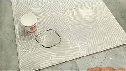 大家都知道瓷磚的吸水性同樣十分重要。吸水性越低,說明瓷磚越耐用。小編把水倒在瓷磚的背面,靜置五分鐘。我們可以看到,水團在瓷磚背面無流動、無分散。依然是保持原來的樣子。五分鐘后我我們放上紙巾。此時,圈內的水立即被紙巾吸收完全。由此可見,芭莎巖石具有高密度、低吸水性的優秀性能。