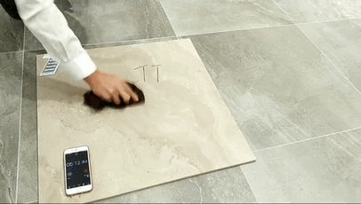 瓷磚除了耐磨、低吸水性之外,抗壓性也十分重要。而耐壓則是通過瓷磚的承重能力體現出來的。小編叫來五個小伙伴,其中四個帥小伙分別抬著瓷磚的四個小角,然后剩下一個人再站上去!小編發現瓷磚表面沒有任何異常現象,這說明該款瓷磚的抗壓性能也很強大!值得擁有!