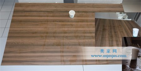 小編把一杯水倒在瓷磚背面,清水迅速聚攏成團,無流動無分散。五分鐘后亦是如此。而后,小編在水團上放上紙巾,即刻間,圈內水團就被紙巾吸收完全。而紙巾之外的地方,水團依然沒有絲毫變化。由此可以看出,LA’BOBO斑馬拼板密度高、吸水性能極好!