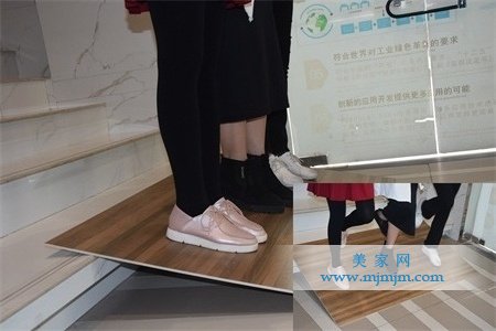 在抗壓性的測試中,小編先把瓷磚放在樓梯口上,然后請三位美女站在瓷磚受力最薄弱的中間位置,三、四百斤的重量壓在傾斜的瓷磚上方,結果會是神馬樣子?