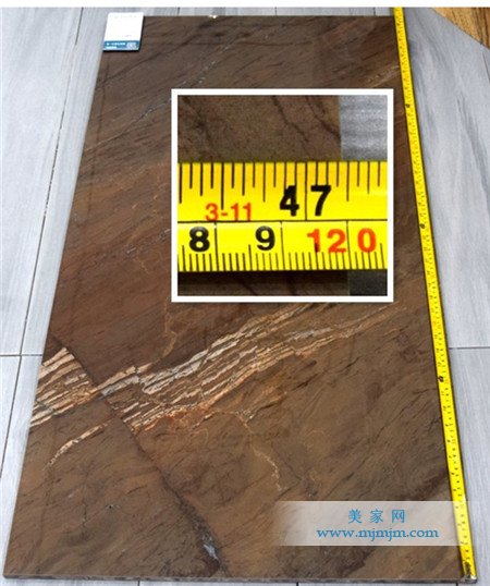 根據(jù)享譽(yù)陶瓷工作人員提供的規(guī)格600*1200MM,美家網(wǎng)測(cè)評(píng)小組分別從產(chǎn)品的長(zhǎng)度、寬度、對(duì)角線進(jìn)行詳細(xì)測(cè)試,經(jīng)過(guò)反復(fù)測(cè)試,最終結(jié)果為600*1200MM,與享譽(yù)陶瓷提供的數(shù)據(jù)完全吻合,可見(jiàn)享譽(yù)陶瓷在產(chǎn)品生產(chǎn)過(guò)程中對(duì)規(guī)格尺寸的嚴(yán)格管控。