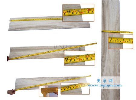 按照國家標準,瓷磚的長、寬誤差范圍為:e±0.5%±0.3%,瓷磚的規格精準度越高,鋪貼的時候越能保證效果和減少浪費。為了測量該款瓷磚的規格,測評人員現場根據康拓瓷木磚提供的參數200*1200*10mm,用標準尺對這款瓷磚進行(如圖)測量。測量結果顯示是,尺寸數據與實際測量數據相符合且準確無誤。