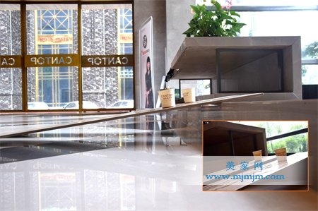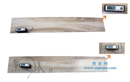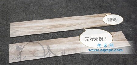 在防滑性的測試中,測試人員把橡木MR2012307與MR2012307-H呈35度斜放,然后再往磚面灑滿水珠,裝滿水的紙杯放在灑滿水的磚面上靜置。五分鐘之后,水杯依然在原處呈放著,沒有絲毫移動,說明該款瓷磚的防滑性能卓越。