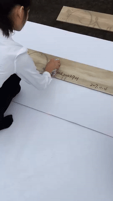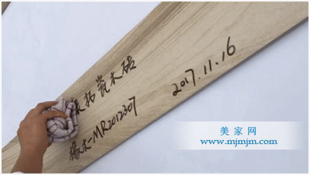 測試員用油性筆在橡木MR2012307/MR2012307-H磚面寫上“康拓瓷木磚”及這款瓷磚的型號、日期。靜待五分鐘,用抹布擦拭,輕輕松松就把字跡清理干凈了,沒有一絲黑色滲透的痕跡。