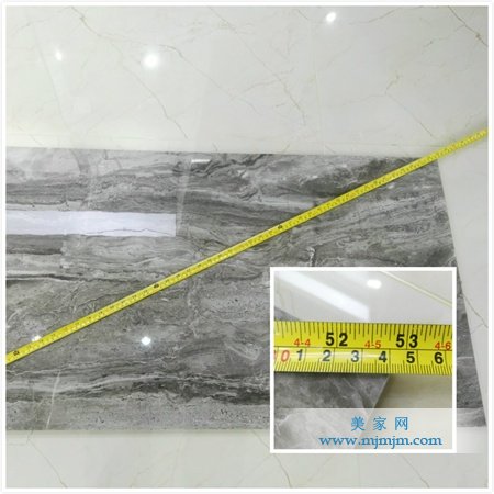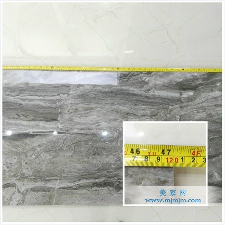 根據商家給出這款鷹納陶瓷MAX系列通體大理石YA12309瓷磚規格是600mm*1200mm,測評人員用軟尺對瓷磚進行測量,長為1200mm,寬為600mm,對角線約為1141,測量結果瓷磚規格屬實無誤,非常標準;
