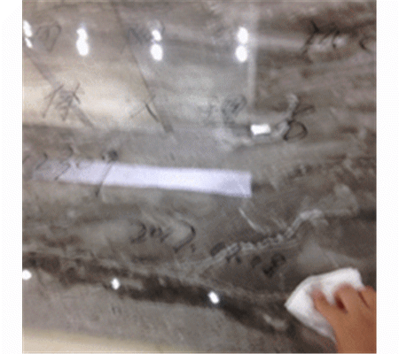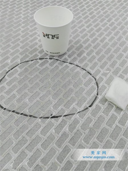 用黑色油性筆在瓷磚表面寫字,靜置數分鐘,然后用紙巾或者抹布輕輕拭擦,瓷磚表面的字體很輕松就被擦得干干凈凈,這實驗證明了瓷磚的防污性能很好,不但大大減少了清潔打掃的時間而且打理起來毫不費力氣。