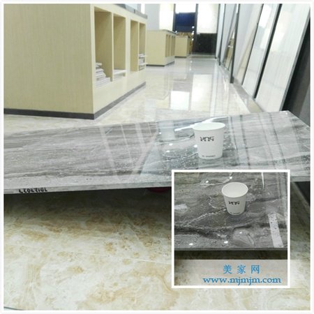 購買瓷磚當然最為看重的是瓷磚的防滑性能如何,測評人員將瓷磚傾斜放置,為了加大測試的防滑程度,工作人員在傾斜瓷磚下面再放置物體墊高瓷磚,使瓷磚更加之傾斜,然后將瓷磚灑滿水,再將裝有半杯水以上的水杯放在瓷磚上面觀察,數分鐘后,水杯依舊紋絲不動并沒有滑落的現象,事實證明瓷磚的防滑性很好,更能確保人行走在瓷磚上面的安全性。