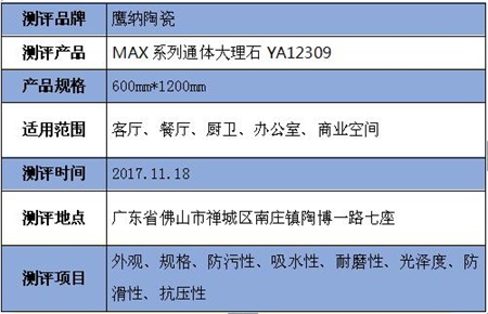 ●測評總結:鷹納陶瓷擁有先進的生產技術裝備、行業專業的技術精英人才。公司產品種類齊全,主要生產和銷售通體大理石瓷磚、金剛鉆、金剛石、金剛釉、仿古磚、瓷片、爆米花微晶石等產品。以上選出一款通體大理石進行各性能測試,實驗結果各項表現出色,鷹納陶瓷以時尚、大方、自然、流暢的花色,贏得了國內外廣大消費者的青睞和好評,遠銷澳大利亞、歐洲、美洲、東南亞、中東等多個國家和地區。