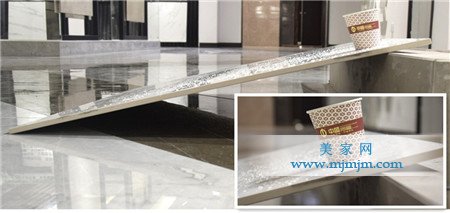 抗壓性是瓷磚產(chǎn)品一項重要的性能指標(biāo)。若抗壓性能不達(dá)標(biāo),會影響瓷磚的抗壓能力,使用過程中會造成瓷磚的開裂、斷裂,影響使用。美家網(wǎng)測評小組對瓷磚的抗壓性進(jìn)行了測試。首先將瓷磚傾斜在不低于45度角的坡面上,然后在上面站上三名健碩強(qiáng)壯的成年帥小伙。觀察幾分鐘,瓷磚依然完好如初。說明這是一款非常抗壓的瓷磚,非常值得擁有。