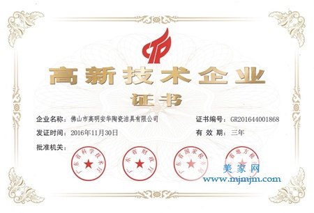 #安華衛(wèi)浴獲“高新技術(shù)企業(yè)”認(rèn)證#