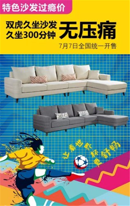 作為此次“品質家居爆品節”核心亮點的暢銷爆品,雙虎集團總部在投入幅度巨大的特惠政策的同時,也是拿出了滿滿的誠意。就拿本次爆品節推出的“久坐300沙發 ”為例,平時坐在沙發上看球,坐久了可能你的腰會疼、腿也麻了、肌肉也有些酸痛,那可能不是你身體的問題,而是你坐的沙發有問題。雙虎家私名品特別為喜歡長時間坐在沙發看電視的朋友們設計了“久坐300沙發”。 “久坐300沙發”采用賽車級舒適坐感系統、全進口多功能層海綿,高彈、舒適、耐久,按人體工程學打造腰、臀、腿黃金三角舒適區,給你堪比五星級睡眠的坐感,即使坐上300分鐘也無任何壓痛感,讓你看世界杯更舒暢!