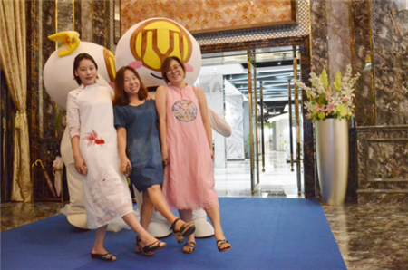 ▲可愛萌翻的吉祥物“錢多多”與媒體合影