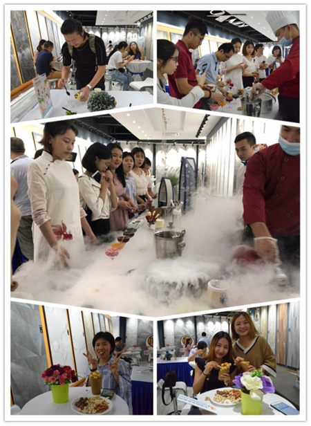 18點15分,自助餐與雞尾酒享樂時光正式開啟。“老友”們與金玉名家領(lǐng)導圍坐在一起,品嘗美味佳肴,舉杯暢飲。在雞尾酒調(diào)酒師的表演和充滿情調(diào)的音樂烘托下,現(xiàn)場氛圍更加輕松、愉悅。就像一場久別重逢的老友聚會,大家說說行業(yè)的現(xiàn)狀,聊聊金玉名家的未來,調(diào)侃一下彼此……嬉笑之間便度過了一個美好的夜晚。