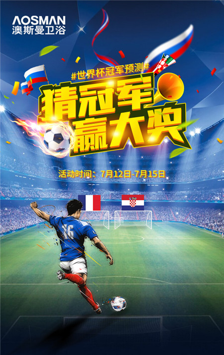 1.關注“澳斯曼衛浴”微信公眾號,回復關鍵字:“支持xx(國家)隊”,獲取“競猜冠軍隊伍”圖片。