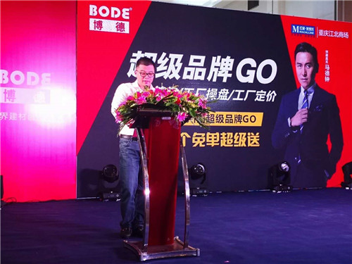 下午14:00,“超級品牌GO”川渝超級聯(lián)動明星落地活動正式開始,博德瓷磚總部領(lǐng)導及重慶紅星美凱龍領(lǐng)導均發(fā)表講話,“表示此次活動讓大家滿意而來,滿載而歸,感謝新老客戶對博德產(chǎn)品的認可,我們將以更高品質(zhì)的產(chǎn)品,和貼心的服務(wù)回饋大家。”