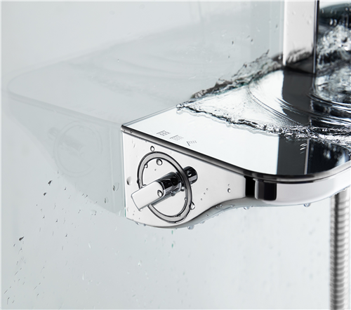 采用360mm*210mm超大頂噴設計,整個水流如同雨幕一般落下,加大肌膚與水流的接觸面積,兩種不同水流模式:雨淋水+噴灑水,享受頂噴出水帶來的不同水感體驗。雨淋模式下,讓整個人都籠罩在雨淋水下,感受水流包圍著整個身體。噴灑水模式下,規則的出水口噴射出不規則的水線,給肌膚一種細致而又有沖擊力的淋浴快感!