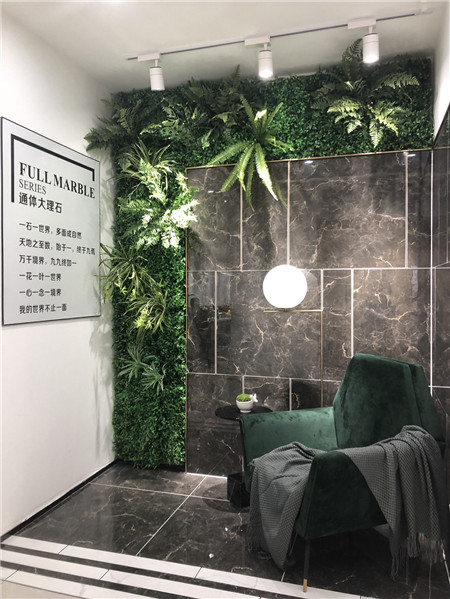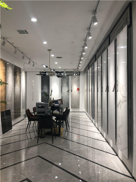 這是大板的選材區,選用打豎的陳列方式,射燈照射下的產品,干凈、整潔、大氣、直觀。
