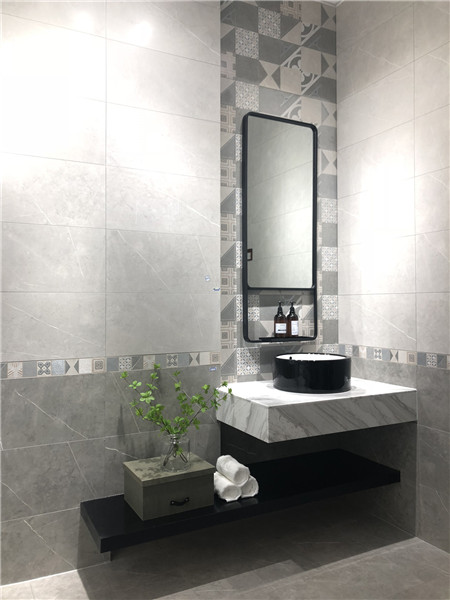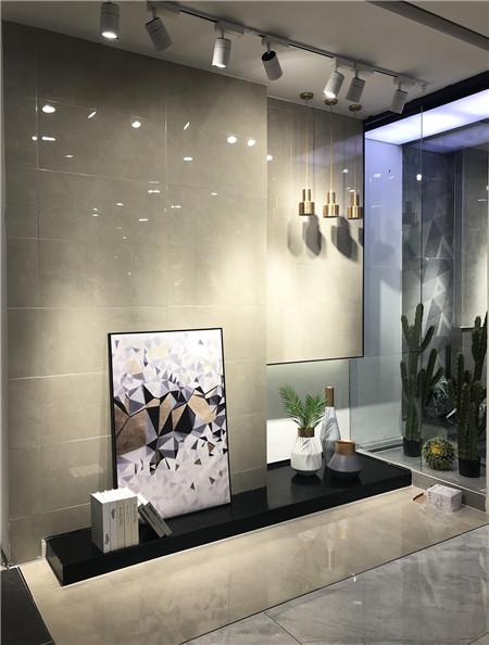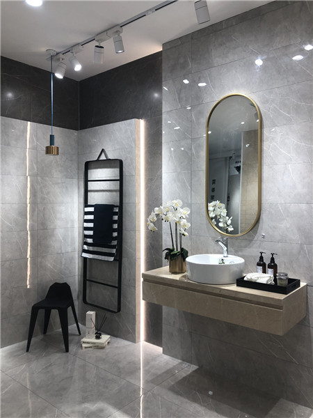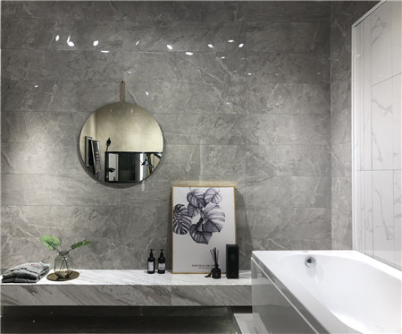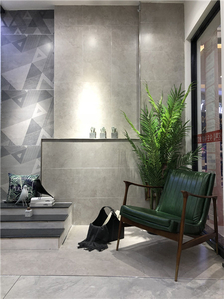 墻面可作電視背景墻、客廳地磚、沙發背景墻、廚衛用磚。高級灰亮面磚深受年輕人喜愛,也很好搭配突出空間效果。