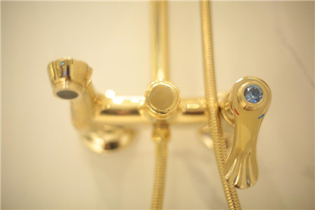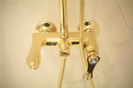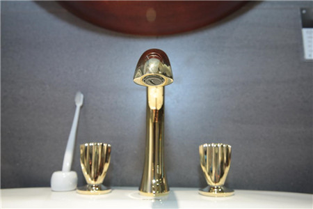 細節(jié)部位,更顯用心,兩個旋鈕中間的水龍頭,如同被兩朵花蕊簇擁之下的蓮花。金色的色澤,是整體感覺更加富有質(zhì)感。