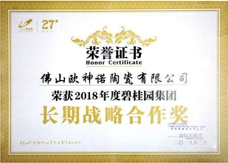 共創(chuàng)共贏,歐神諾陶瓷獲頒碧桂園“長(zhǎng)期戰(zhàn)略合作獎(jiǎng)”