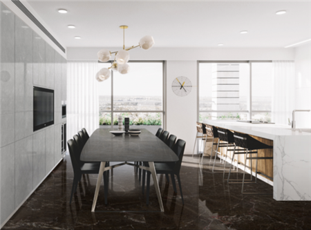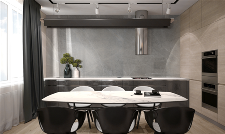 因此,LA’BOBO巖板厚度雖薄,但硬度不減。1200x2400x6mm規(guī)格已通過(guò)國(guó)家檢測(cè),破壞強(qiáng)度遠(yuǎn)高于國(guó)家標(biāo)準(zhǔn)800N,并且吸水率低于0.1%,巖板密度高,防火防水防滲污,耐磨耐酸堿,能大量應(yīng)用在空間墻地飾面上,同時(shí)也適用于廚房料理臺(tái)、中島臺(tái)和櫥柜等飾面,再也不用擔(dān)心清除污垢和因劃痕影響美觀等各種問(wèn)題。