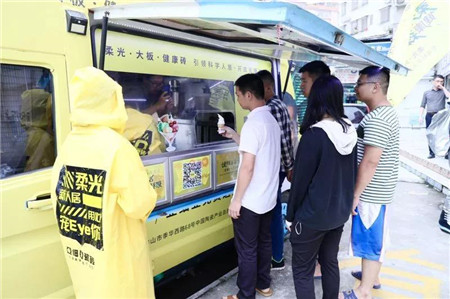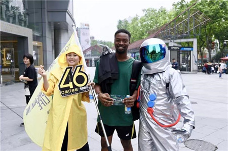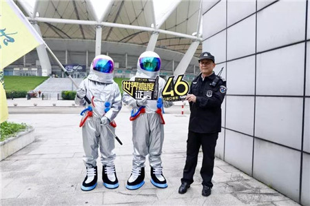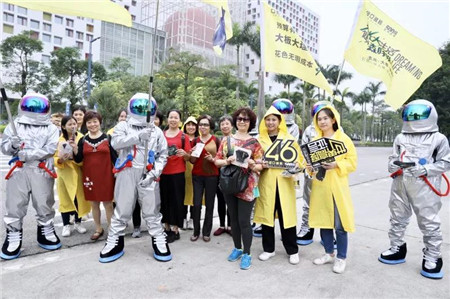 在展廳之外,亞細亞宇航員巡游席卷陶城,公益送水車給保安和清潔工送水,送趣味眼罩和健康口罩等。