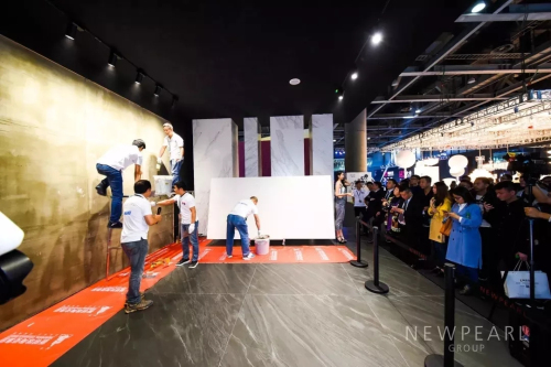與馬貝合作,直接把巖板的鋪貼工藝做現(xiàn)場(chǎng)演示,一解設(shè)計(jì)師們的困惑。