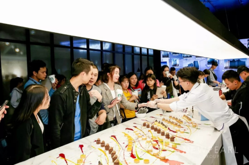 在單純靜態(tài)的產(chǎn)品展示中增加生活場(chǎng)景體驗(yàn)式展示。冠珠聯(lián)手高端分子料理,在巖板廚房上大玩美食花式,增加了互動(dòng)性和體驗(yàn)感。