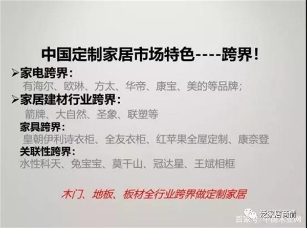 眾多知名企業憑借資本優勢和品牌優勢,跨界而來,來爭搶定制家居的蛋糕。從目前來看,家具、木門、地板、板材行業全行業集體性跨界進入定制家具,這不是一個簡單的行業現象。