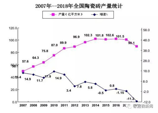 而在此前的2018年,就曾被稱為建陶行業最糟糕的一年,光看陶瓷磚產量下滑就降至90.11億平方米,同比下降11.2%。2019年已過半,就是如此情景,更是令人唏噓。
