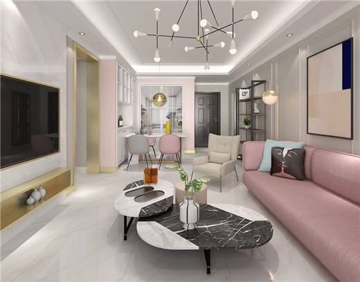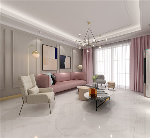 粉色沙發(fā)與粉色窗簾相呼應(yīng)