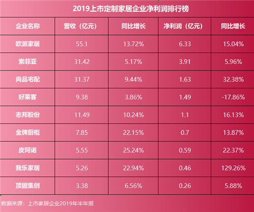 復雜多變的經濟環境加劇了市場競爭和行業洗牌,面對外部環境的綜合影響,9大上市定制品牌營收、凈利潤增速總體放緩。在國內精裝、整裝趨勢已成的背景下,可以預見,在2019年下半年,傳統零售渠道將會遭受到更大的沖擊,為此,上市定制企業積極謀變布局,紛紛開拓整裝、家裝版圖。而成果幾何,我們拭目以待!
