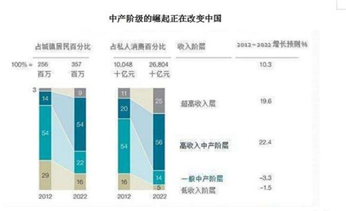 有分析認為,過去12年中,中國藍領工人的收入增長了8倍,驚人的收入增長,擴大了中國的消費基礎,使得消費成為推動經濟增長一個最重要的推動力。麥肯錫分析師預計,到2020年中國將有近4億家庭成為收入在1.6萬到3.4萬美元之間的“主流消費者”,或者說中產階層消費者。