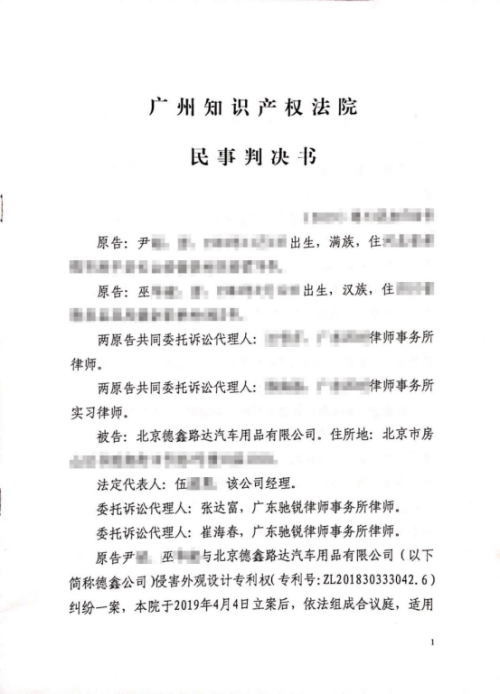 北京德鑫路達汽車用品有限公司因銷售的產品涉嫌侵害外觀設計專利權被訴,案件棘手,處理難度非常大,一旦敗訴,將造成較大經濟損失!為了打贏這場沒有退路的官司,熊先生慕名找到馳銳所代理該案。