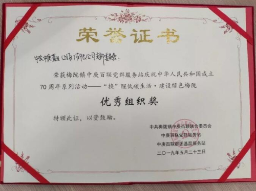 中共中庚置業(yè)黨支部在此次活動中 榮獲“優(yōu)秀組織獎”