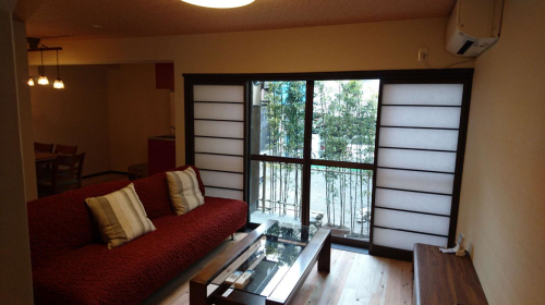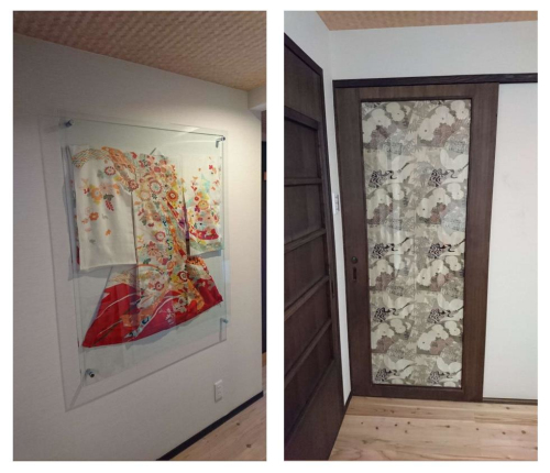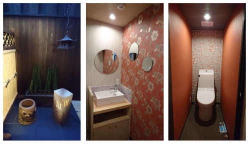非常別致的町屋民宿改造案例。主人家本身就是從事裝飾方面的工作,所以整體的裝飾很有藝術(shù)感,設(shè)計(jì)師使用了傳統(tǒng)的服飾、紋樣等元素作為裝飾,誘人的紅色、橙紅構(gòu)成對(duì)比,營(yíng)造與眾不同的京都風(fēng)情。