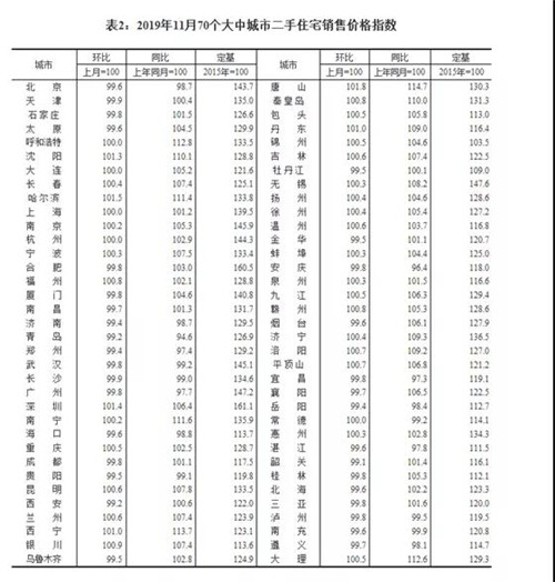 2019年11月70個(gè)大中城市二手住宅銷售價(jià)格指數(shù)